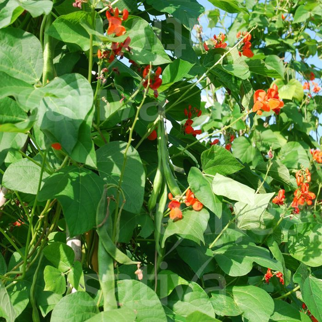 Savoureux haricot d'Espagne aux belles fleurs rouge vif. Les gousses à maturité ont des fils que l'on peut facilement enlever. Convient à des terrains difficiles (sols grossiers, précipitations élevées).